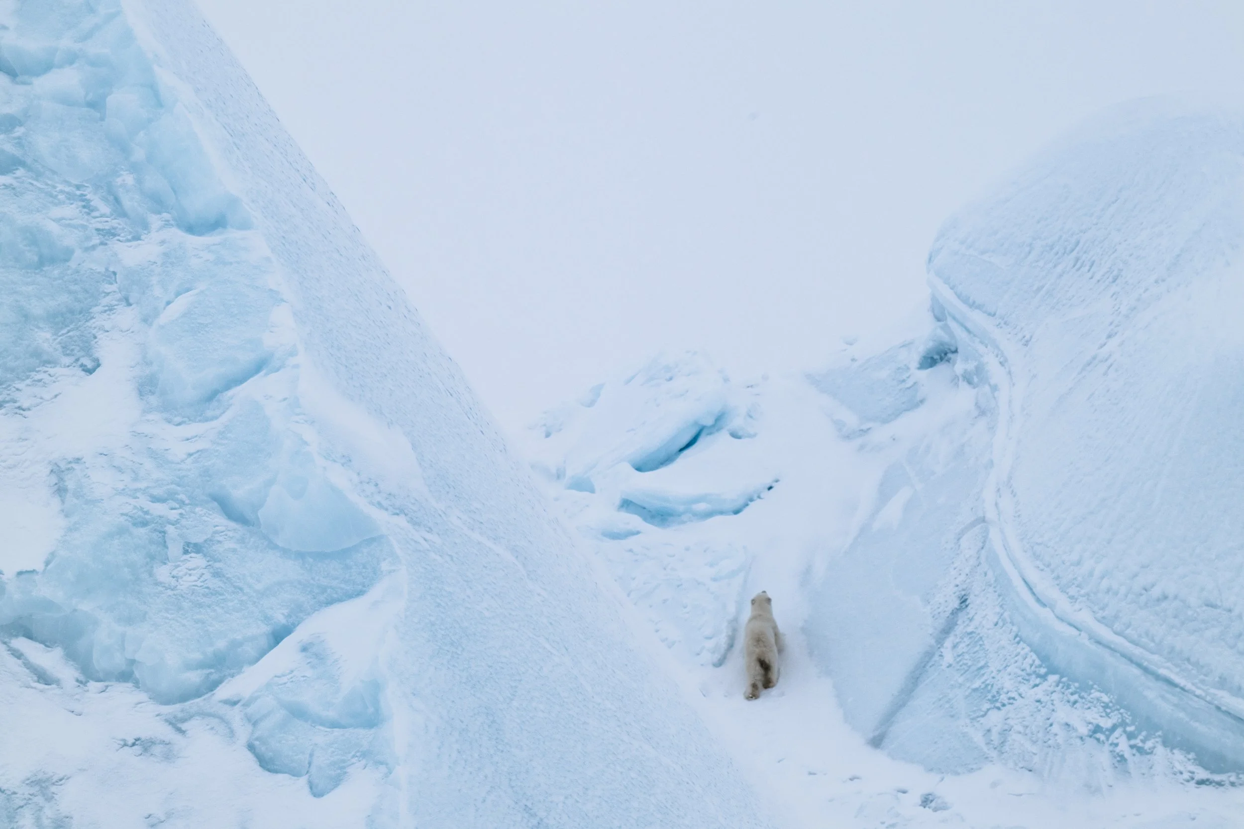 Photographed at one of the highest points I’ve ever reached in Baffin Island, near the edge of the North Pole, Pale Mooncaptures a lone female polar bear moving through a vast expanse of silence and snow. This is my favorite place to photograph them — where the light feels weightless, the air holds its breath, and the world exists between shadow and dream.
